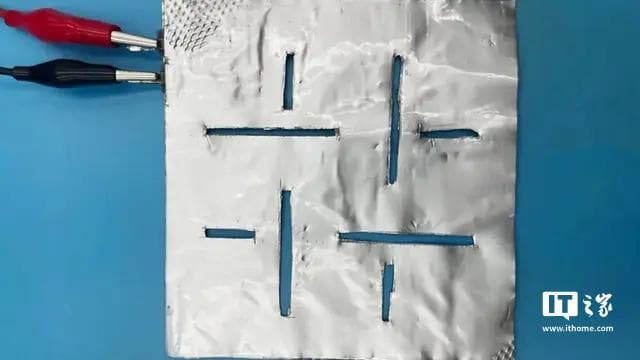 据IT之家了解,研究团队采用了一种柔性锂离子电池袋,并在其上切割了一系列水平和垂直的矩形孔洞。这种电池由一种具有一定弯曲度的扁平复合材料制成,制造过程相对简单,且使用了传统的电极材料和热压耗材。团队成员 Lin Xu 解释说:“这种设计对运动员或长时间佩戴电子设备的用户尤其有用,例如用于健身追踪的智能服装、医疗监测设备等需要兼顾舒适性和可靠性的应用场景。”
