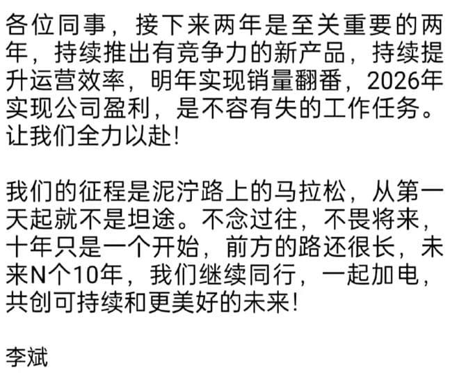 对于今年的销量目标,蔚来创始人李斌早在内部信中透露过:2025年销量翻番且2026年实现公司盈利。