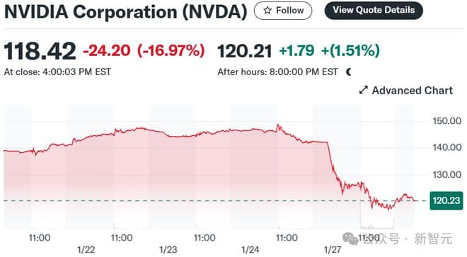 周末,DeepSeek造成的恐慌情绪已经酝酿了两天,果然一到周一就爆发了出来:市场发生剧烈震荡。