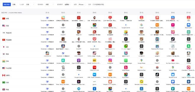 DeepSeek在APP store全球榜登顶 图源点点数据