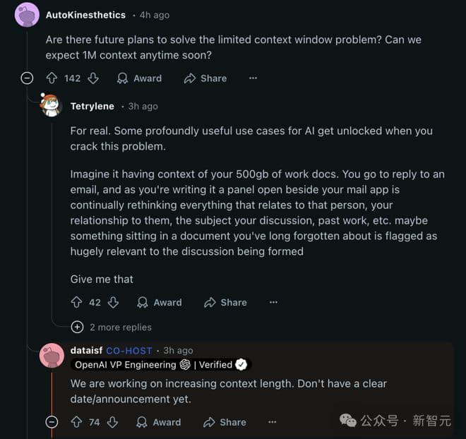 工程副总Srinivas Narayanan:我们正在努力增加上下文长度。还没有明确的日期/公告。