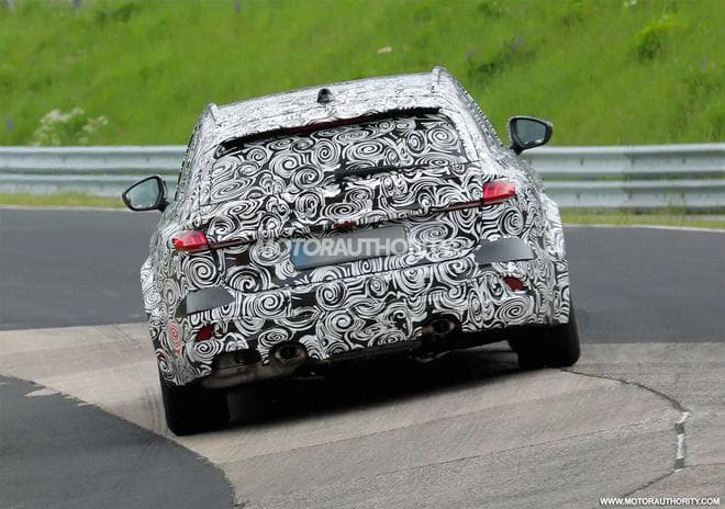 根据曝光的路测图片,外观方面,配备了大尺寸进气口、加宽的翼子板、巨大的交叉钻孔刹车盘以及标志性的 RS 椭圆形排气管,该车同时配备了燃油加注口和充电接口,预示着它将采用插电式混合动力系统,挡风玻璃上的黄色警告贴纸也进一步证实了这一点。