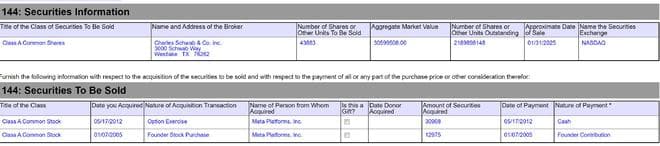 根据Meta在2024年第三季度提交的一份表格,这些出售符合扎克伯格2024年8月9日通过的 10b5-1 规则交易计划。该计划允许这位高管出售多达518,000股Meta A类股票和170 万股B类股票,这些股票由为持有他的股份而设立的实体持有。当时,该计划价值13亿美元。