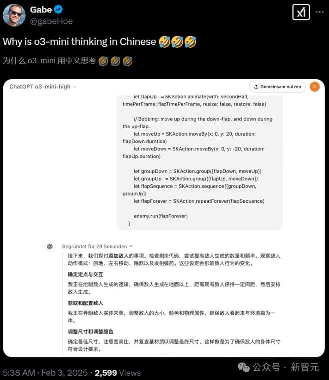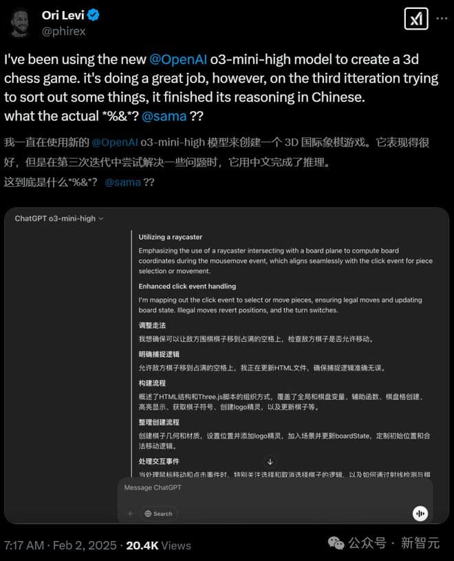 OpenAI o3-mini被曝大量使用中文推理!全世界AI都要学中国话了?