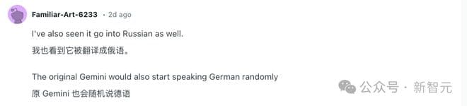事实上,这种「语言混杂」(language mixing)现象在其他AI模型中也有发现。