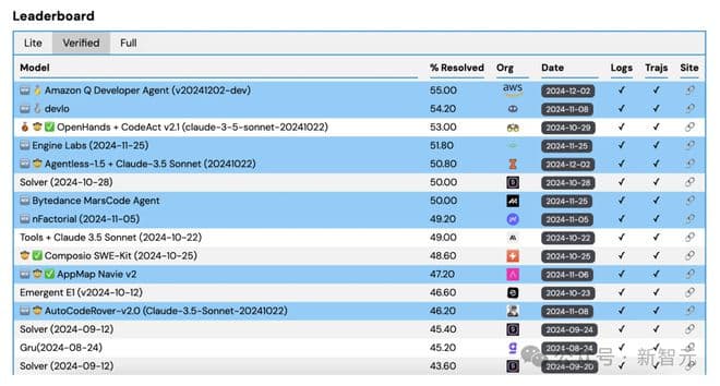 SWE-bench 验证排行榜(截至2024年12月19日)