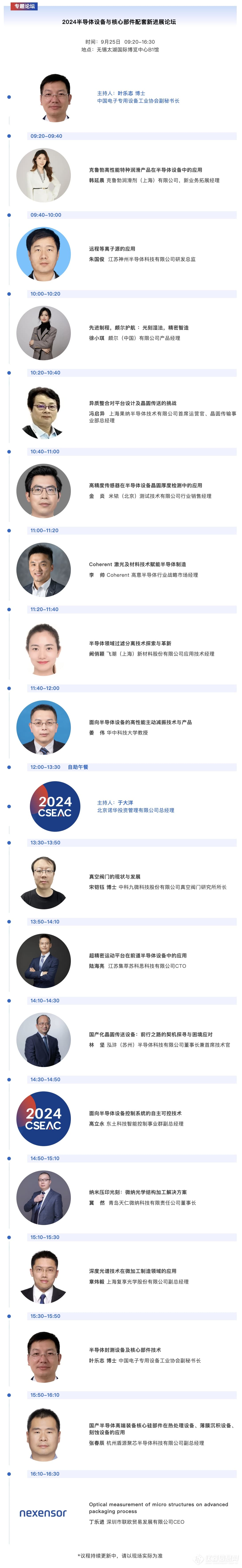 议程公布!CSEAC 2024半导体设备与核心部件配套新进展论坛