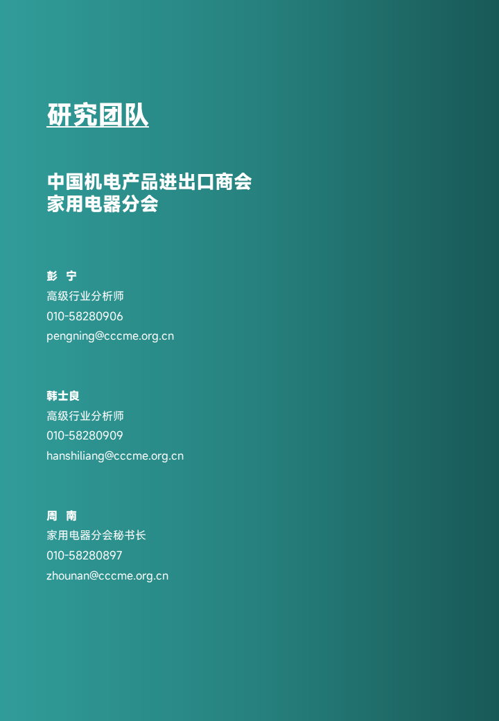 联系人:家用电器分会 彭宁