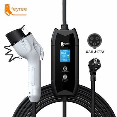 Feyree便携式16 A单相电动汽车充电器家用充电站1型充电电缆,带1.8英寸LCD屏幕显示控制